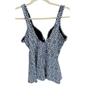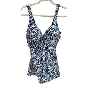 Swim Solutions women's Plus Size 16 Swim Dress One Piece Navy Blue White