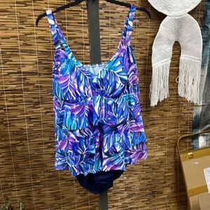 Swim Solutions Plus Size Tummy Control Printed Fauxkini One-Piece Swimsuit, Created for Macy's - Dancing Palm