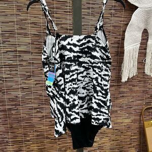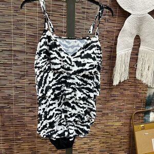 Swim Solutions Plus Size Tummy Control Triple Tier Fauxkini, Created for Macy's - Feral Stripes