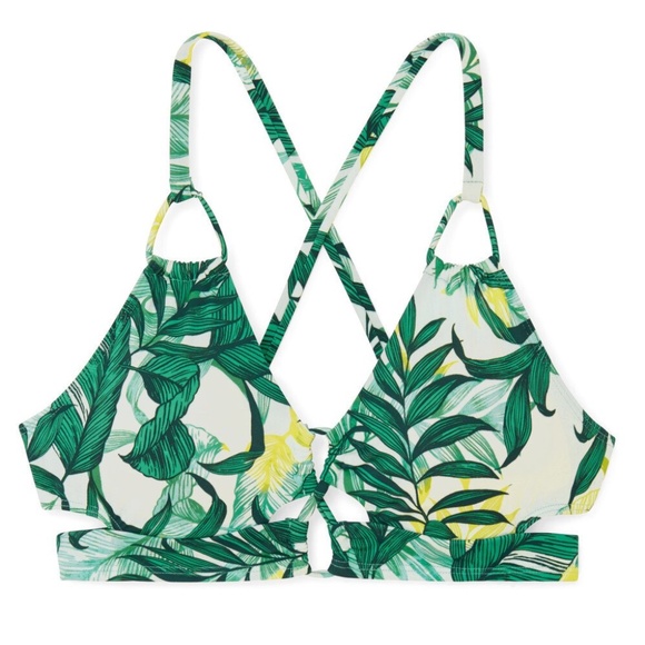 This retro flower print is in full bloom! paradise-bouquet print is 'almost' as sultry as her strappy cross-loop details, Put the petal to the metal and pair these triangle cups with the denim for a look so fresh, it’ll never wilt.
