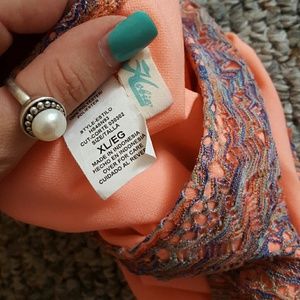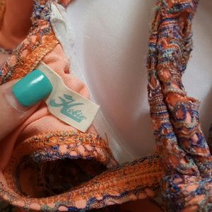 Hobie brand Swim suit. Unique design with soft lace fabric. Bought in Key West at expensive store. Never got to wear. Top doesn't have size but fits 34C and bottom fits more like a Large