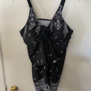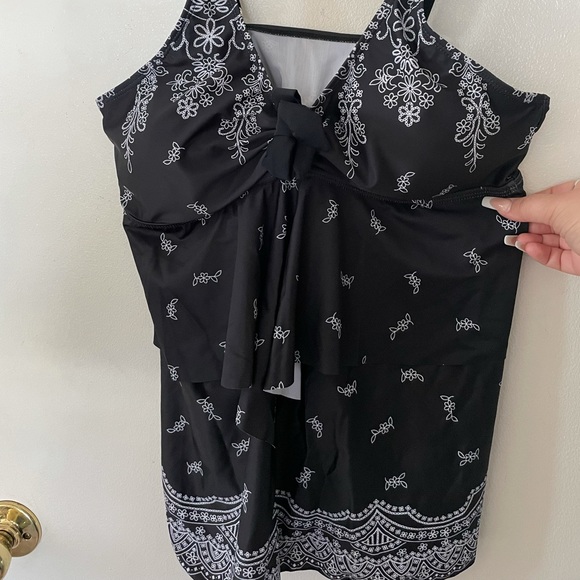 Black and white swim top with built in bra