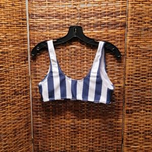 Navy Blue and White striped pullover swim top / sports bra, top is fully lined with lightly padded removable cups, laying flat measurement *approx*
