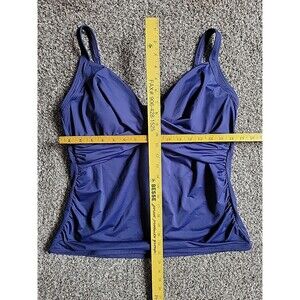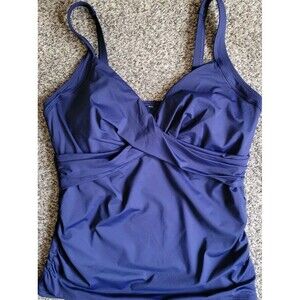 Swim Top Navy 16P petite Lands' End Solid Wrap Front Tankini (L) Underwire S622
