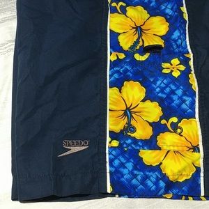 Speedo -Navy w/Side Leg Tropical Print.