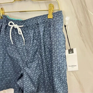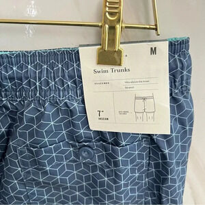 New, Goodfellow & Co Swim Trunks Shorts Construct Blue Micro Print 7" Inseam Built-In Brief Elastic Waist, side and back pockets, adjustable drawstring.