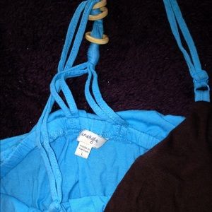 Bottoms are both brand new, black one still has tags. The purple lands end purple skirted bottoms one is more purple and shown in the photos, 2 of the pics make it look more pink. Black size 12 skirted bottoms. Brown and turquoise cover up with cute back and beads size large. They all fit about a large/12