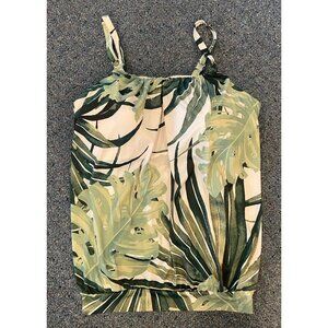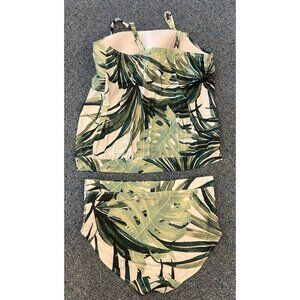 Swim by Cacique 2 Piece Bathing Suit Swim Tankini Green White Tropical Size 18