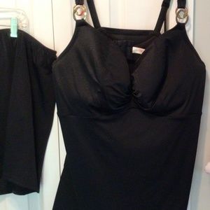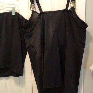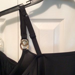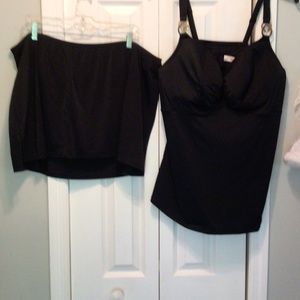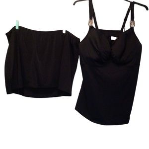 Swim by Cacique 44DDD Padded Bra Black Swimsuit Strap Top Gold Accent Skirt 26
