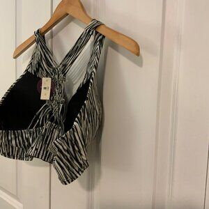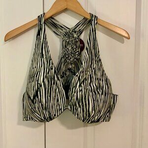 Swim by Cacique Black Tribal Zebra Print Underwire Bikini Top 40D New
