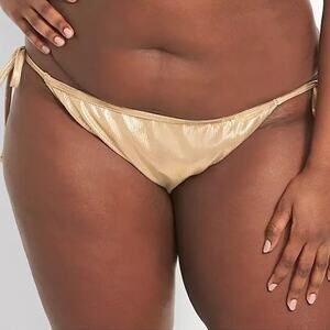 Swim by Cacique Lane Bryant Metallic Gold Ribbed Side Tie Bikini Bottoms Size 24