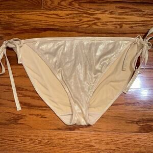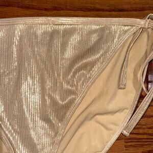 Swim by Cacique Lane Bryant Metallic Gold Ribbed Side Tie Bikini Bottoms
