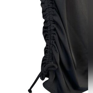 Fitted. Body hugging with flattering fashion details. Curve-enhancing and ruched to give your tummy a slimming effect.