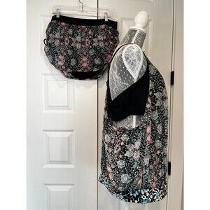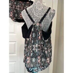 Swim by Cacique Set No Wire Bra Blouson Tankini Top Plus Size 18 black Floral