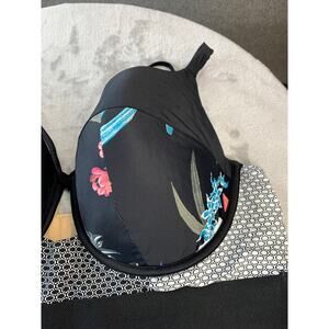 Swim by Cacique Swim Top Black Multi Floral Bikini Underwire Support Size 42DD