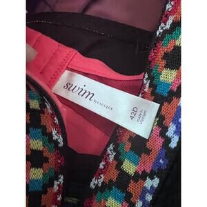 Swim by Cacique Tankini 42D Black Aztec Halter Balconette Underwire Swimsuit Top