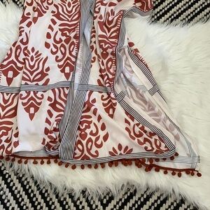 Swim cover up ball fringe rust cream and black color kimono, robe