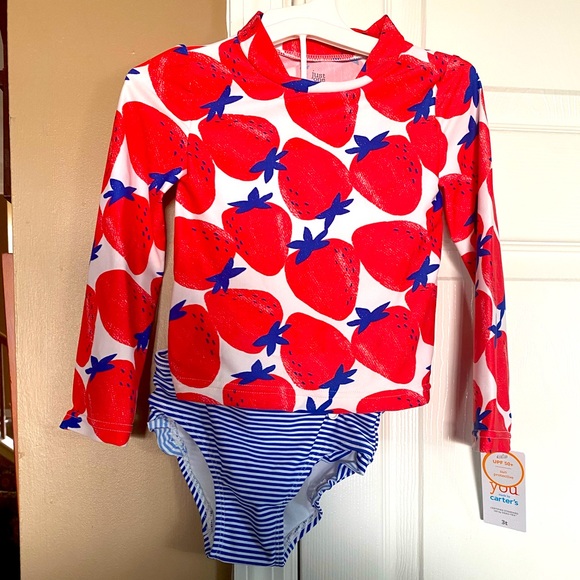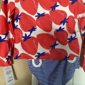 Carter’s 2pc swim set strawberry top with blue striped bottoms