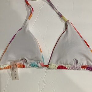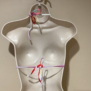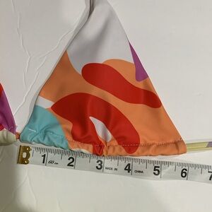 Both pieces size Medium. Fully lined. Adjustable neck & back ties. Triangles slide on string to adjust desired coverage. Removable bust pads included.