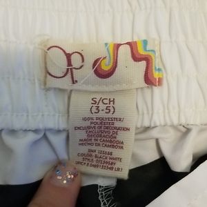 Black and white striped swim shorts. There are POCKETS!