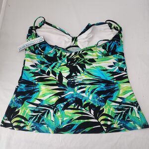 Get ready for a tropical escape with this two-piece swimsuit set. The blue and green color combo is perfect for a sunny day out at the beach. The underwired top with spaghetti straps and adjustable accents provides comfort and support, while the high-waisted bottoms give you that classic, retro look.
