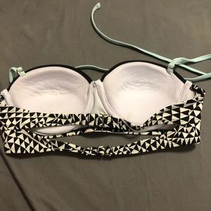 Blue and black diamond design shoulder strap swim top