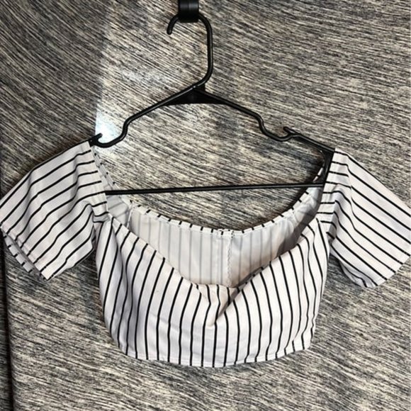 Black and white stripped swim top