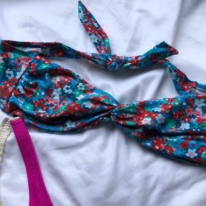 2) bandeau top blue floral w/ red