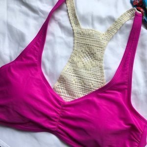 1) pink sports bra like top w/ crochet back - new with tags
