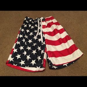 Black Green & Gray swim Trunks. Red White & Blue. Both size small in youth