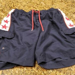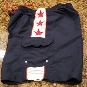Stylish swim trunks in patriotic colors. just in time for summer fun