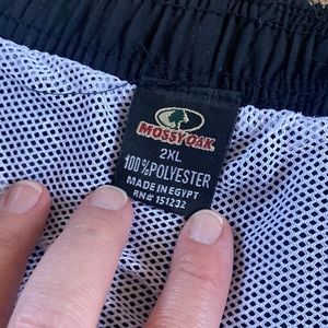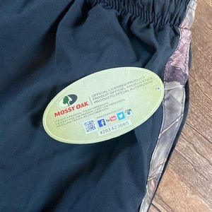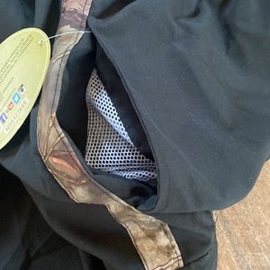 Never worn and has tags. Black with camo trim. Mesh netting on inside and draw string. And cargo pocket