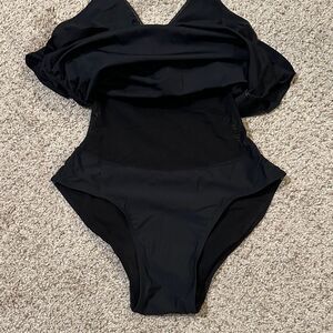Amazing SWIM piece!! It naturally runs small and sucks you in it creating smooth lines! Great condition… only worn twice. Very comfortable and I got so many compliments! CLEAN. No balling, snags or pulls. There are spanx built in under the dress. Padded top and tie back with a little subtle sparkle! Look fabulous in this piece at the next pool party!