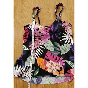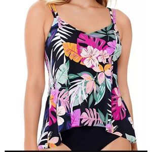 A stunning new look with chic details, this vibrant tankini top from Swim Solutions features sleek princess seams and a high-low hem.