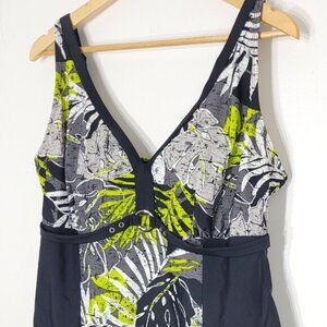 SwimSuit One Piece Green Blue Floral Dress Bathing Suit Adjustable Strap Sz XL