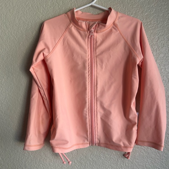 5T swim zip rashguard in a pinkish/peach color