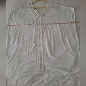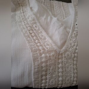 Raviya L Swim cover, 66" bust, 30" long gauze, embroidered front, tassels, v neck, rayon