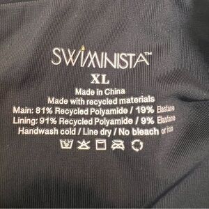 Sustainable swimwear responsibly made and produced with plastic bottles and spandex.