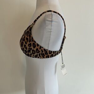 Leopard print bikini top. Removable soft cups. Adjustable straps and back strap. NWT
