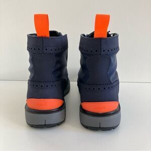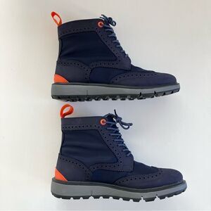 Swims Charles Classic Waterproof Boot. Fantastic for wet weather! Classy wingtip brogue style boot with neon orange accents. Textile upper. Synthetic lining and insole. Anti-slip rubber outsole. New in box! Gender neutral.