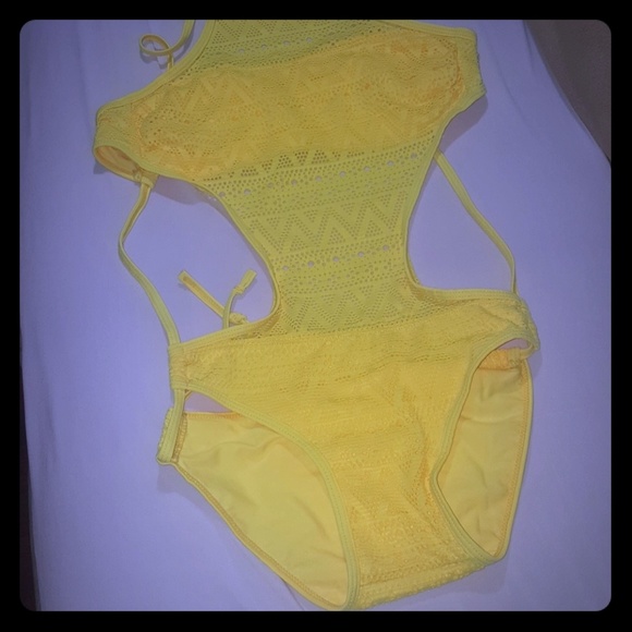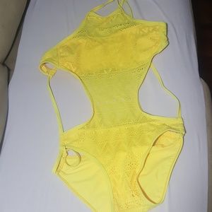 Yellow crochet string monokini..Size Small.. fits like an XS.. bust and hip section is lined. NWOT