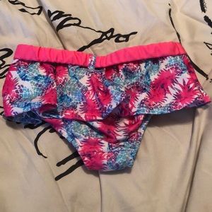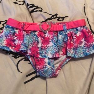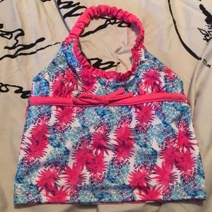 Super cute 2 piece halter top swim suit with skirt attachment on bottoms. Only worn a couple of times so still in real good condition