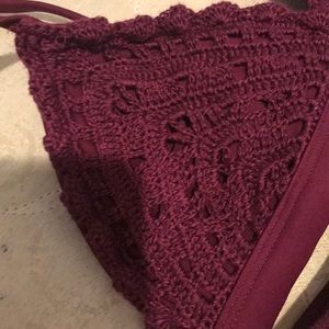 Lace top pattern size small Bottoms with double strap size extra small Maroon color