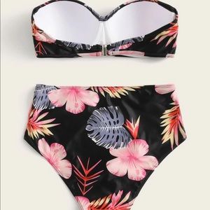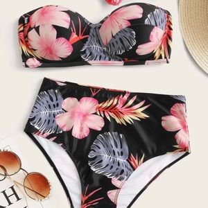 Floral Push up bandeau high waisted bikini swimsuit