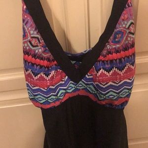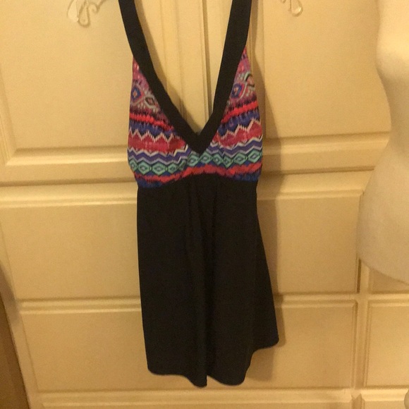 Up top multi colors swimsuit dress in back straps crisscross top is padded