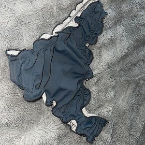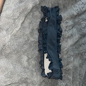 Top is strapless bottoms are ruffled