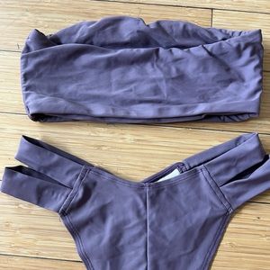 Two piece purple swimsuit( the color didn’t show up good in the photo) please see my personal photo where you can see the color better