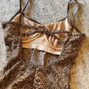 Villager (Liz Claiborne) one piece swimsuit. Brown and black snake print with built in bra lining (no pad). Excellent condition.
