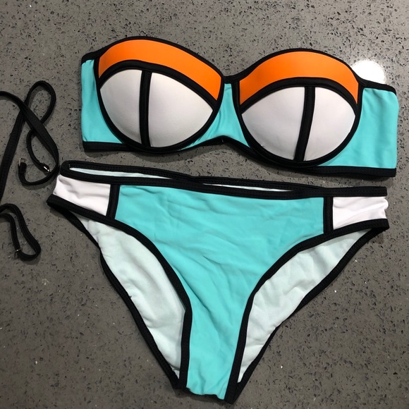 Colorblock Neoprene swimsuit. Brand new never worn !! If it helps I’m 34C-D and it fits with no issues.