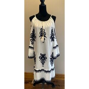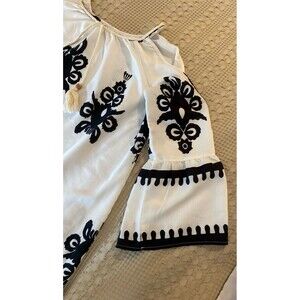 Swimsuit Coverup Dress Off Shoulder Black & White Plus Size XL Ethnic Boho Sexy